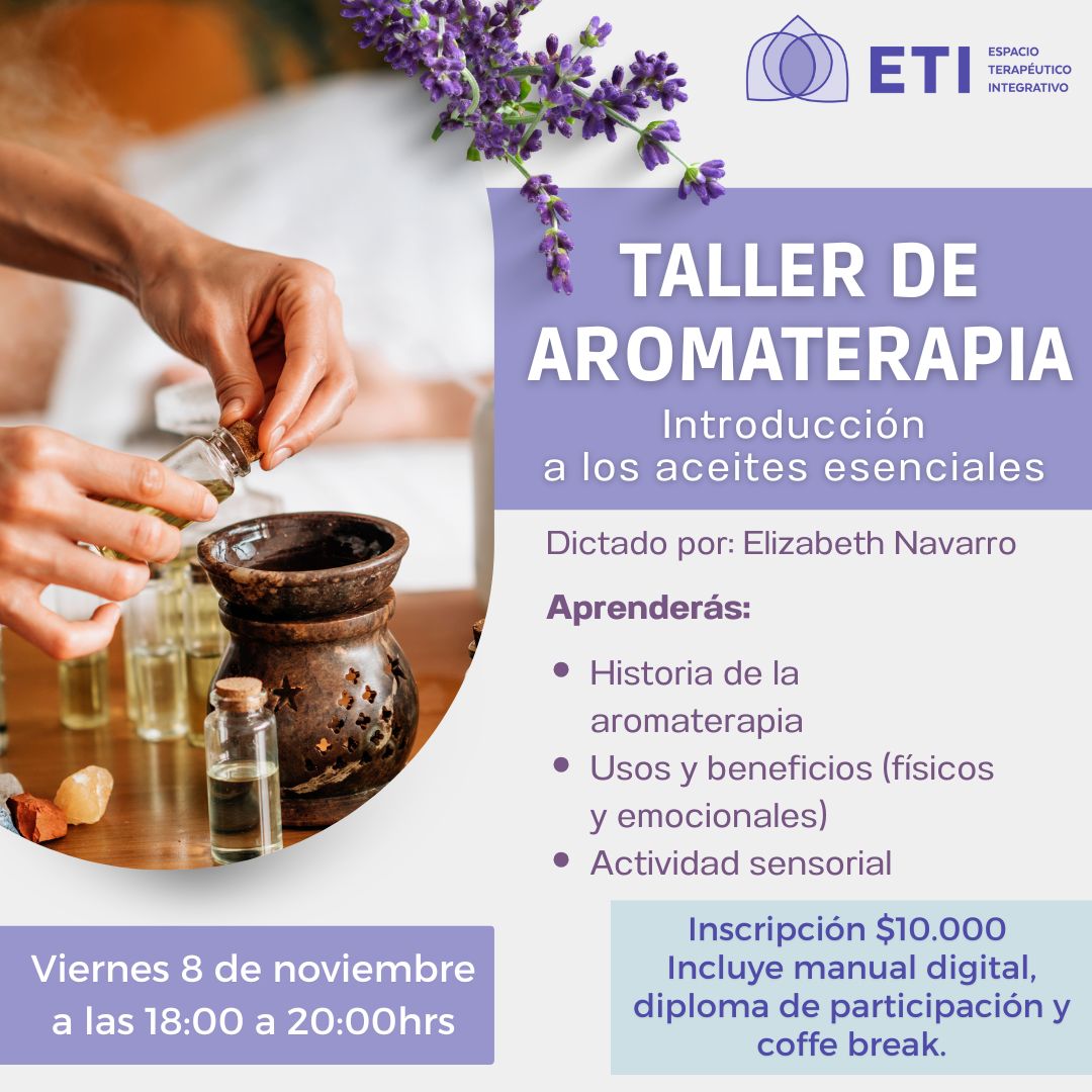 Este viernes 8 de noviembre de 18:00 a 20:00hrs, te invitamos a un nuevo taller de aromaterapia dictado por Elizabeth Navarro.